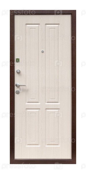 Модель входной металлической двери, изолированная на белом фоне