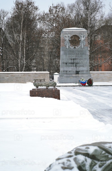 Санкт-Петербург (Россия). Мемориал "Дачное воинское кладбище" в зимний день
