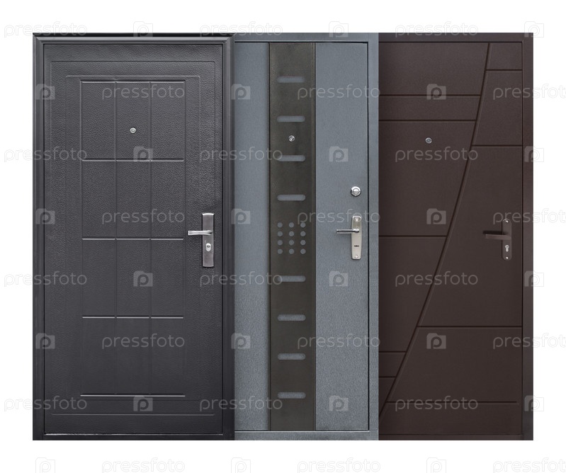 Модель входной металлической двери, изолированная на белом фоне