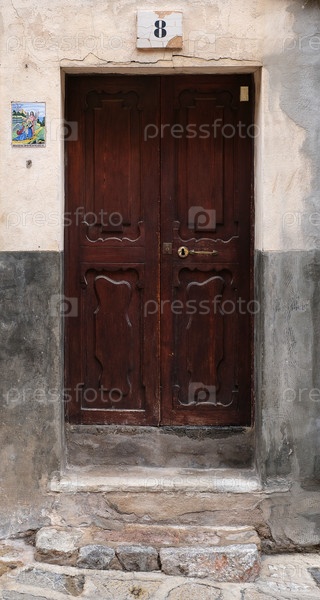 Модель старой европейской входной двери в портале (изолирована на белом фоне)