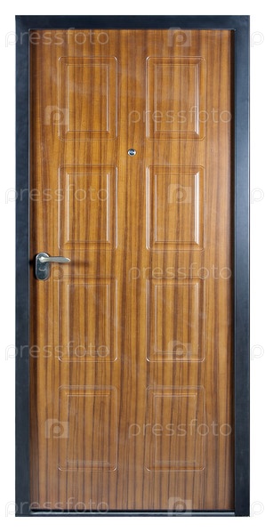 Модель входной металлической двери, изолированная на белом фоне