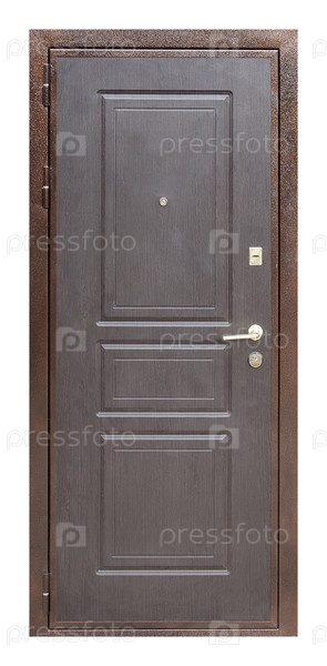 Модель входной металлической двери, изолированная на белом фоне