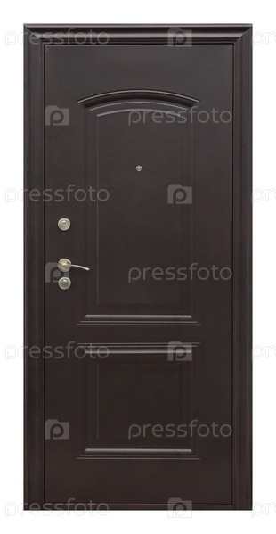 Модель входной металлической двери, изолированная на белом фоне