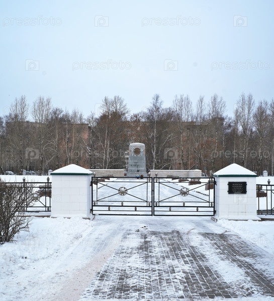 Санкт-Петербург (Россия). Мемориал "Дачное воинское кладбище" в зимний день