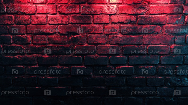 Мрачная индустриальная стена из красного кирпича, подсвеченная драматическим освещением, идеально подходит для городских фонов, гранжевых текстур или винтажных архитектурных проектов