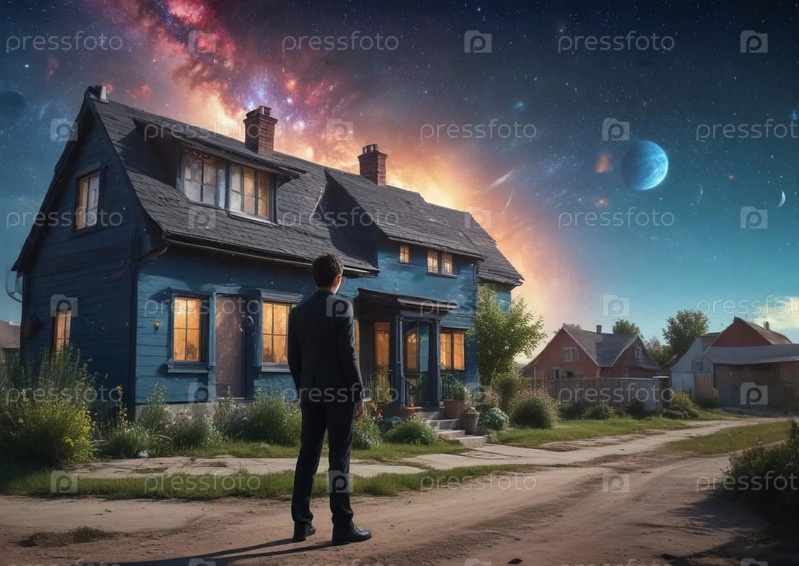 мужчина в костюме стоит у дома в деревне