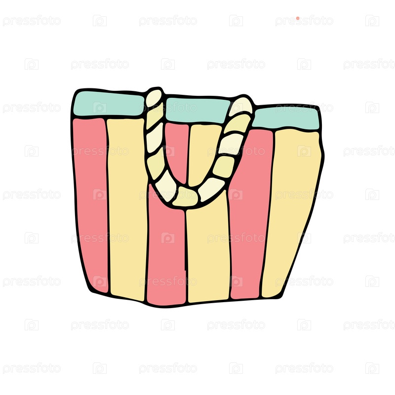 Иллюстрация красочной полосатой пляжной сумки, идеально подходящей для летних каникул. Идеальная для путешествий на море, эта модная сумка-тоут одновременно стильная и функциональная