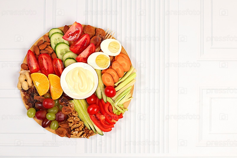 Диетическое питание и концепция сыроедения, здоровые органические продукты для похудения и снижения веса, прерывистое голодание. Здоровый завтрак с ингредиентами, меню для кафе или ресторана, фон кухни