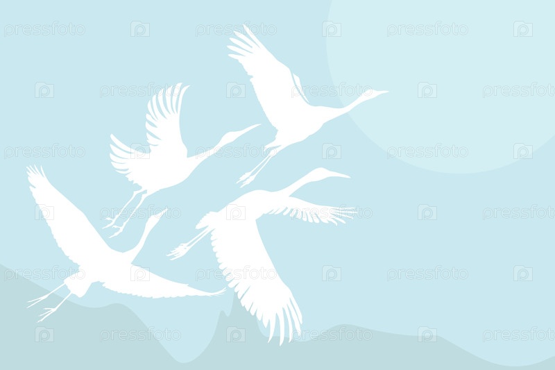 Векторный рисунок. Стая журавлей изолирована в синем небе