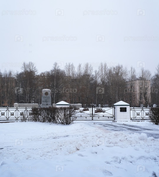 Санкт-Петербург (Россия). Мемориал "Дачное воинское кладбище" в зимний день