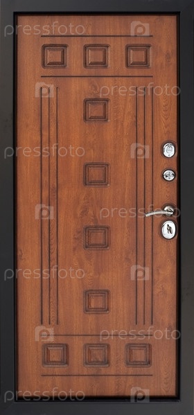 Модель входной металлической двери, изолированная на белом фоне