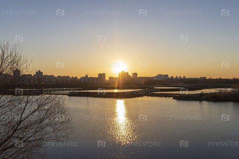 Городской пейзаж на закате. Концепция