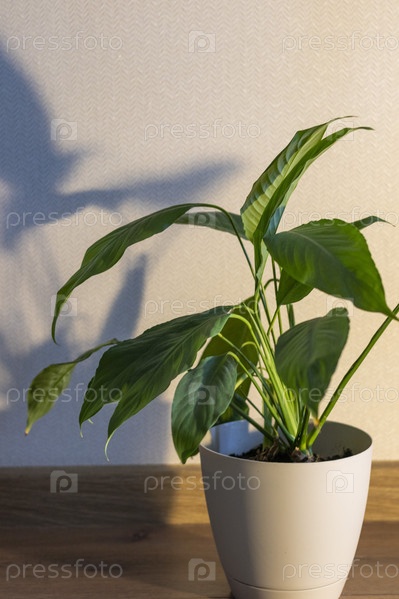 Комнатное растение, отбрасывающее тень на стену позади. Концепция