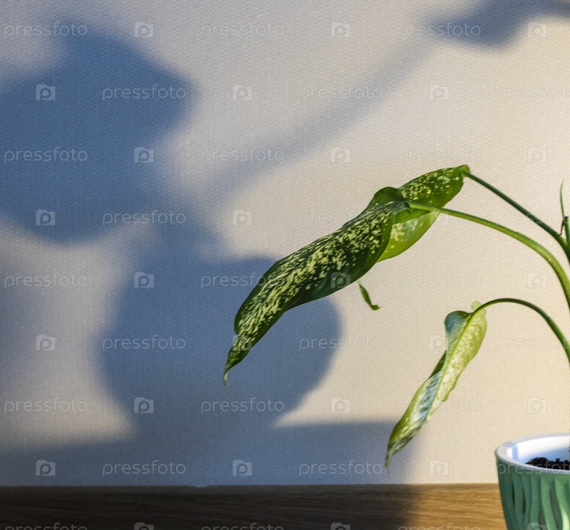 Комнатное растение, отбрасывающее тень на стену позади. Концепция