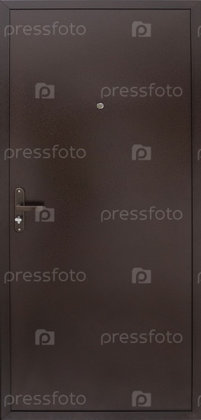 Модель входной металлической двери, изолированная на белом фоне