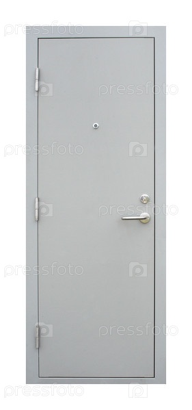 Модель входной противопожарной металлической двери, изолированной на белом фоне