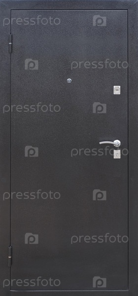 Модель входной металлической двери, изолированная на белом фоне