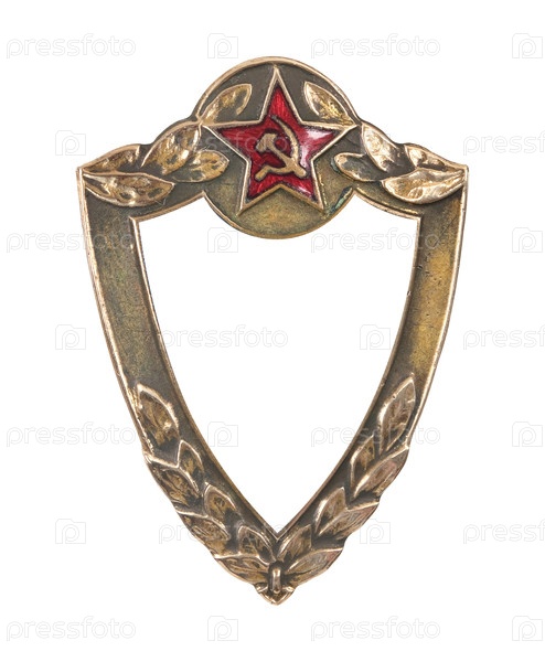 Золотая рамка с красной звездой для картин, зеркал или фото, изолированных на белом фоне. Элемент дизайна с обтравочным контуром