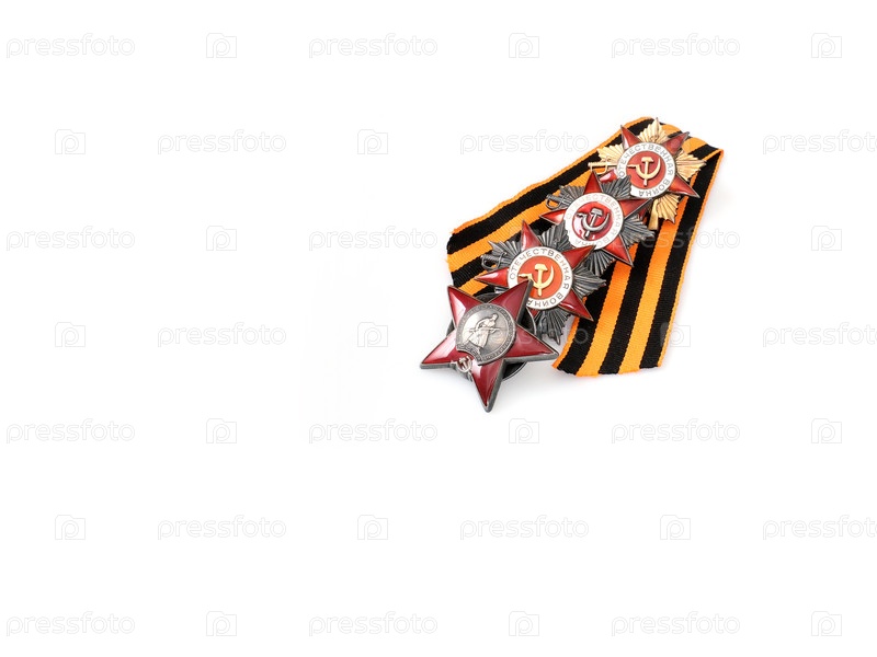Лента ордена Святого Георгия и военных наград СССР. Надпись на английском языке означает 'военный ветеран' с датами Второй мировой войны 1941-1945 гг. Изолирована на белом фоне