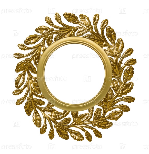 Золотая рамка (венок) для картин, зеркал или фото, изолированных на белом фоне. Элемент дизайна с обтравочным контуром