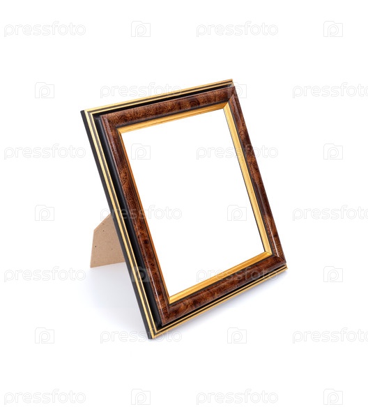 Деревянная рама для картин, зеркал или фото в перспективе, изолированная на белом фоне. Элемент дизайна с обтравочным контуром