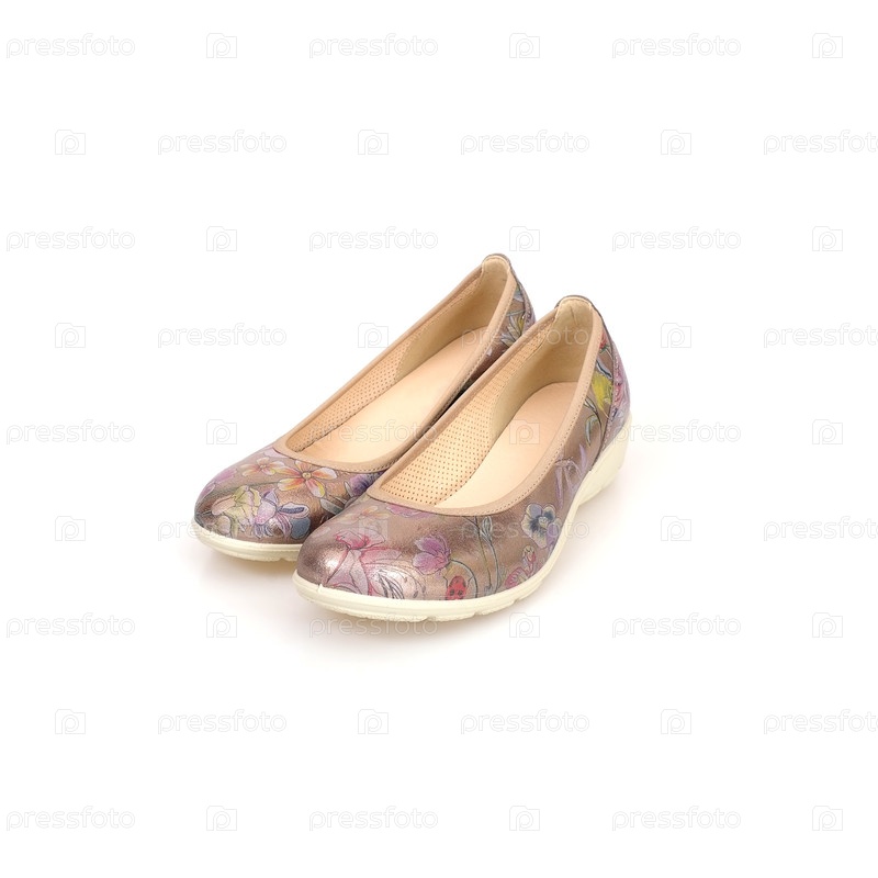 Удобные красивые туфли на низком каблуке, изолированные на белом фоне