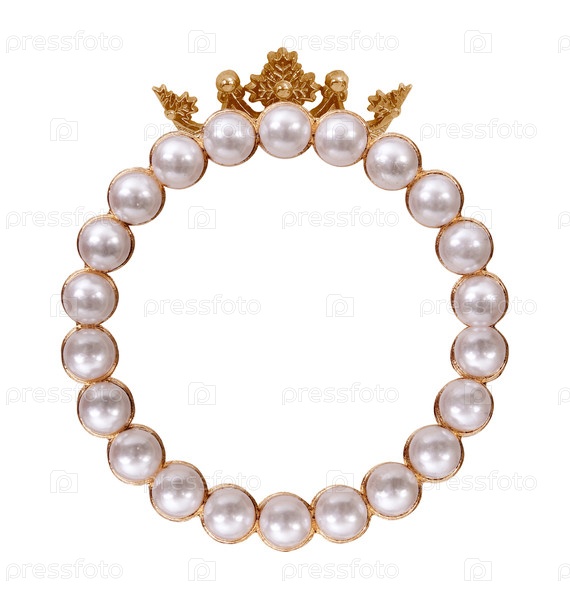 Золотая рамка с жемчугом для картин, зеркал или фото, изолированных на белом фоне. Элемент дизайна с обтравочным контуром