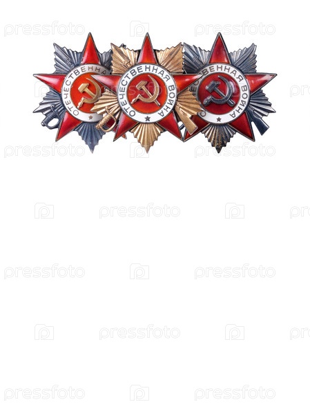Военный орден Отечественной войны (первой степени) СССР с резной шпилькой и винтовым креплением. Надпись на английском языке означает 'Патриотическая война'