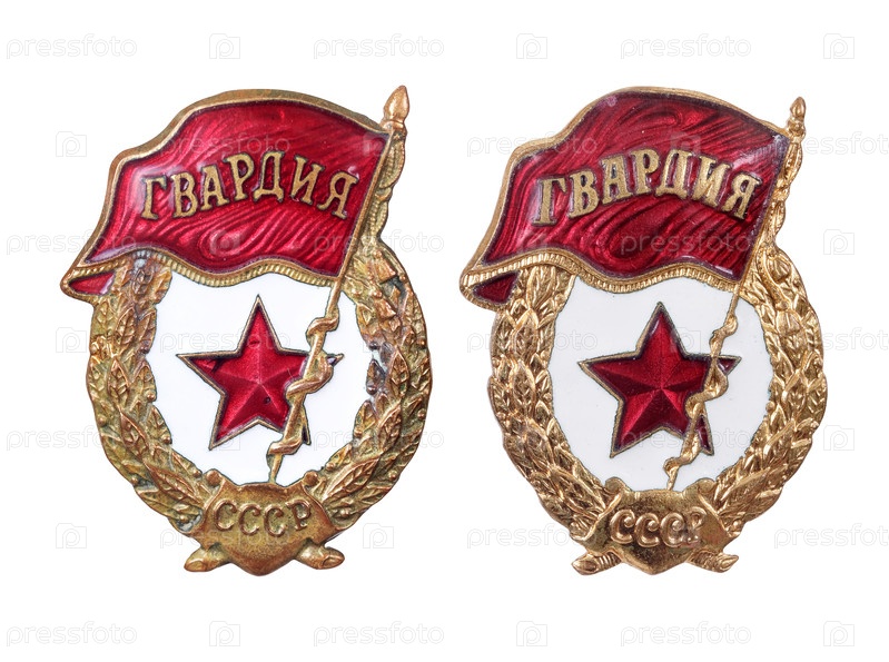 Значок Советской Гвардии, который носили члены гвардейских частей (1940-е и 1980-е годы). Элемент дизайна с обтравочным контуром