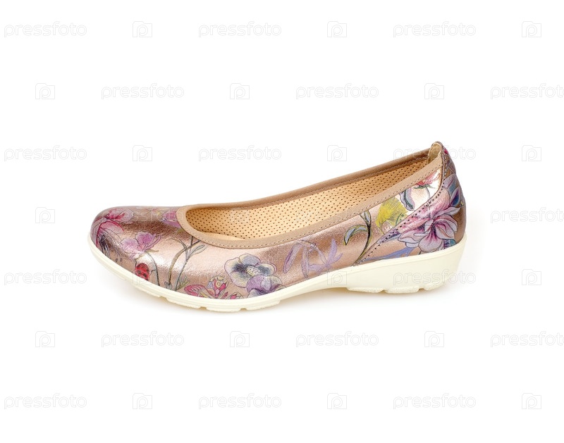 Удобные красивые туфли на низком каблуке, изолированные на белом фоне
