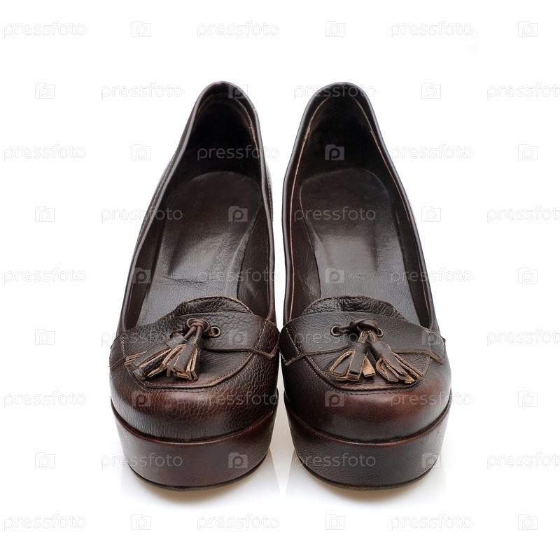 Женские кожаные туфли на высоком каблуке, изолированные на белом фоне