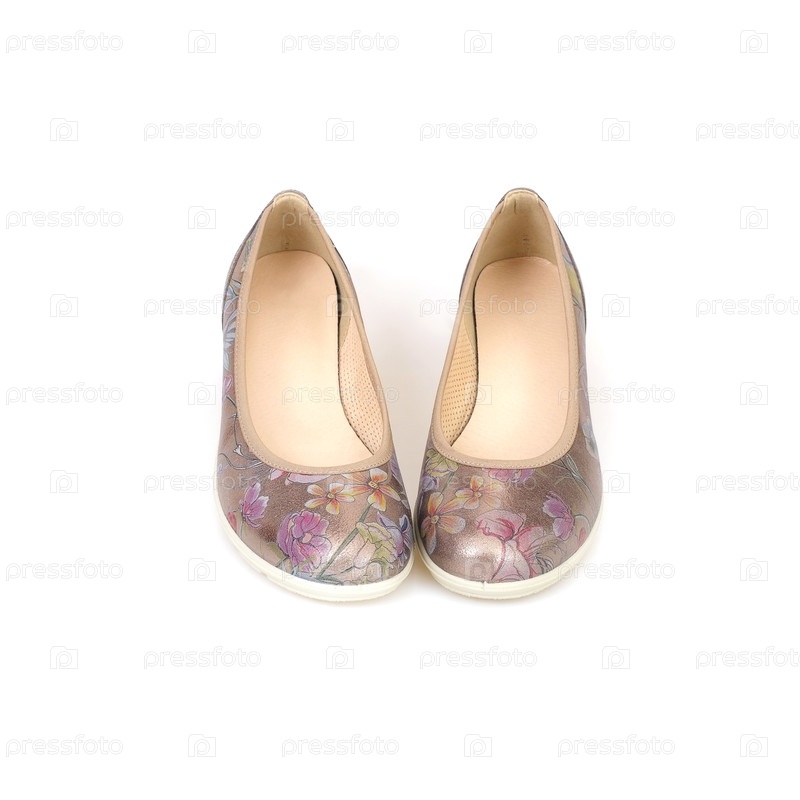 Удобные красивые туфли на низком каблуке, изолированные на белом фоне