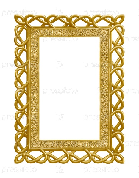 Золотая рама в форме сердца для картин, зеркал или фотографий на белом фоне