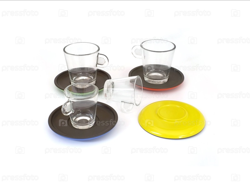 Чашки и блюдца для кофе или чая (набор), изолированные на белом фоне