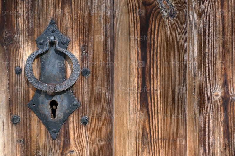 Старая деревянная дверь и замок. Изолированный фон