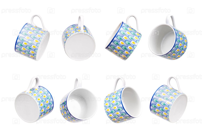 Чашка чая со средиземноморским орнаментом, изолированная на белом фоне. Элемент дизайна с обтравочным контуром