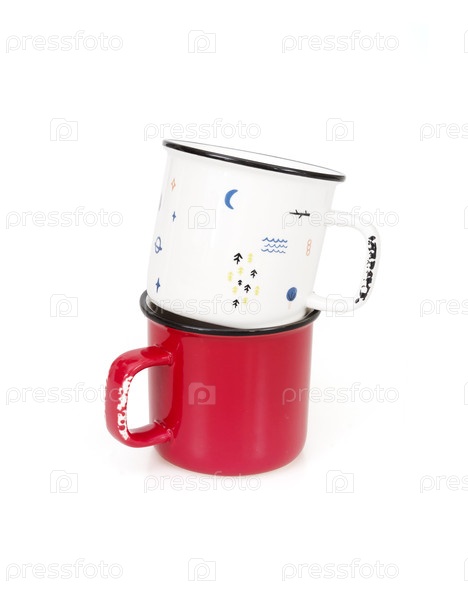 Две керамические кружки, изолированные на белом фоне. Элемент дизайна с обтравочным контуром