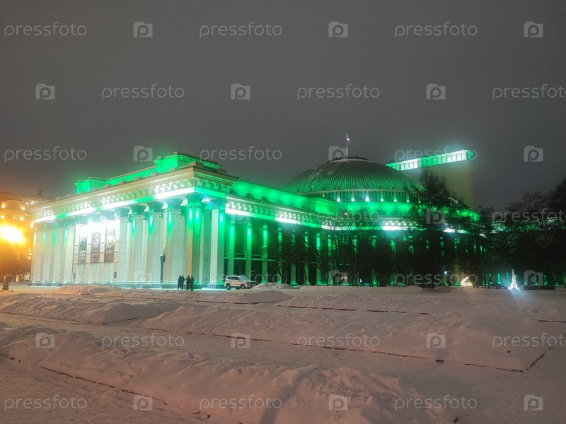 НОВАТ, Театр оперы и балета, зима, ночь, Новосибирск