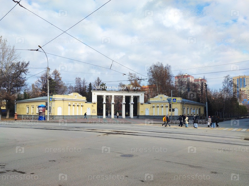 Вход в центральный парк города Новосибирска осенью