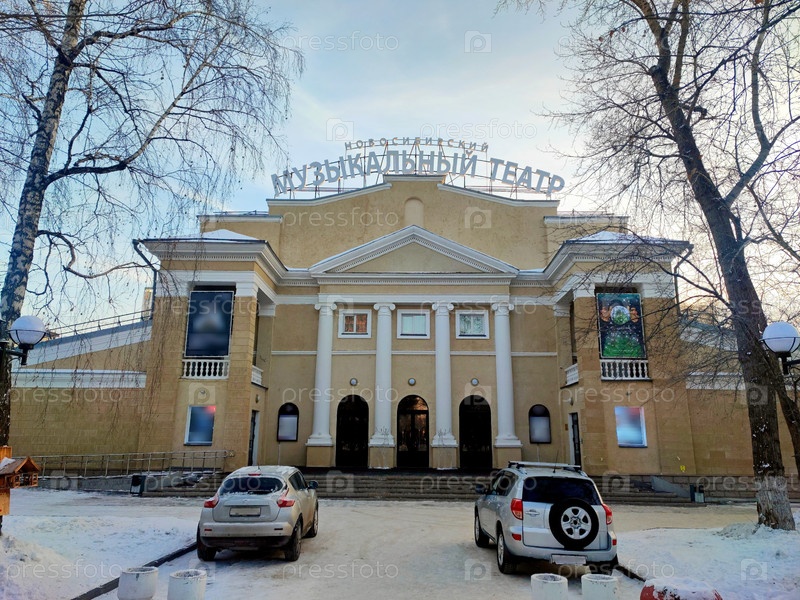 Новосибирский музыкальный театр зимой, главный вход