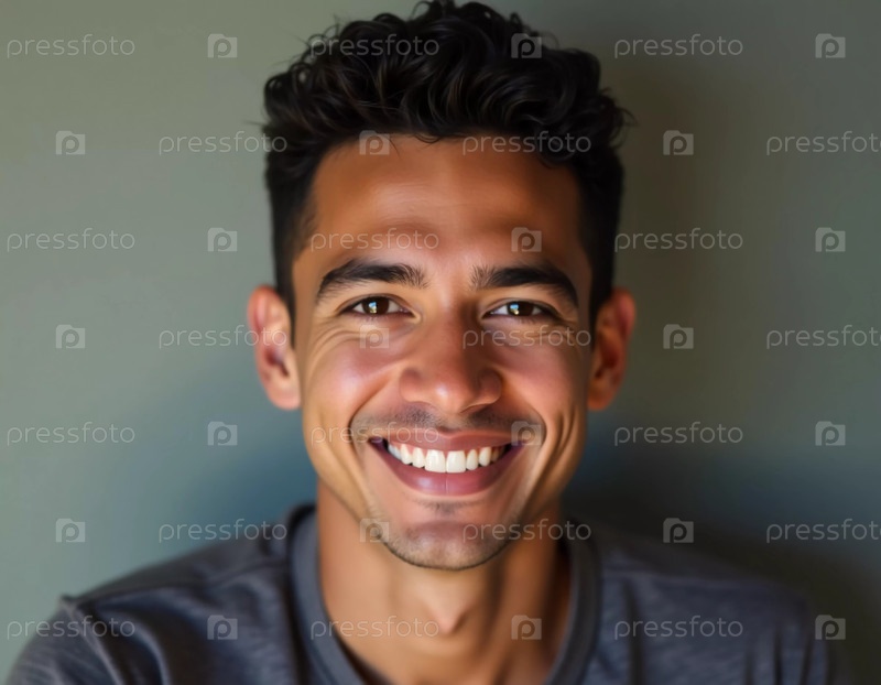 Бразилец широко улыбается, излучая радость и позитив. Его вьющиеся волосы и дружелюбное поведение создают гостеприимную атмосферу, усиливая общую теплоту запечатленного момента