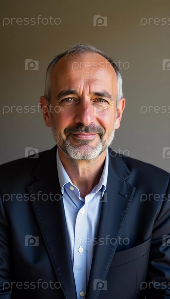 Мужчина-израильтянин сидит на мягком фоне, излучая тепло и уверенность с искренней улыбкой.Его официальная одежда дополняет спокойную обстановку, создавая гостеприимную атмосферу AI