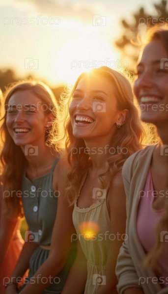 В золотом сиянии друзья купаются в смехе и счастье, наслаждаясь совместным путешествием. Тепло солнца усиливает их радость на ярком фоне природы