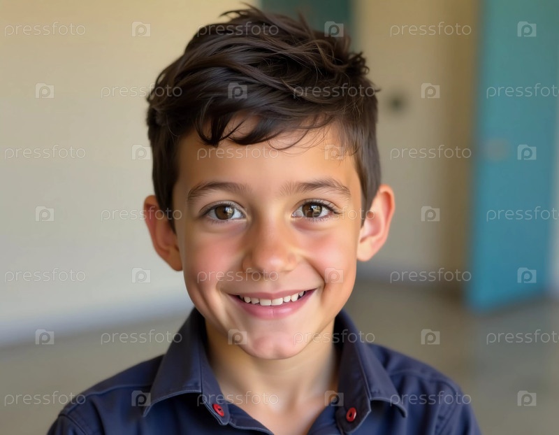 В оживленном помещении молодой мальчик из Израиля сияет от счастья, демонстрируя свою очаровательную улыбку. Атмосфера теплая и гостеприимная, запечатлевающая момент чистой радости