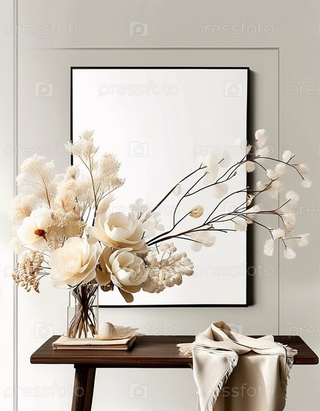 Потрясающая композиция из белых цветов гипсофилы выставлена на деревенском деревянном столе. Тонкая элегантность усиливает художественную атмосферу со вкусом оформленной комнаты Генеративный искусственный интеллект