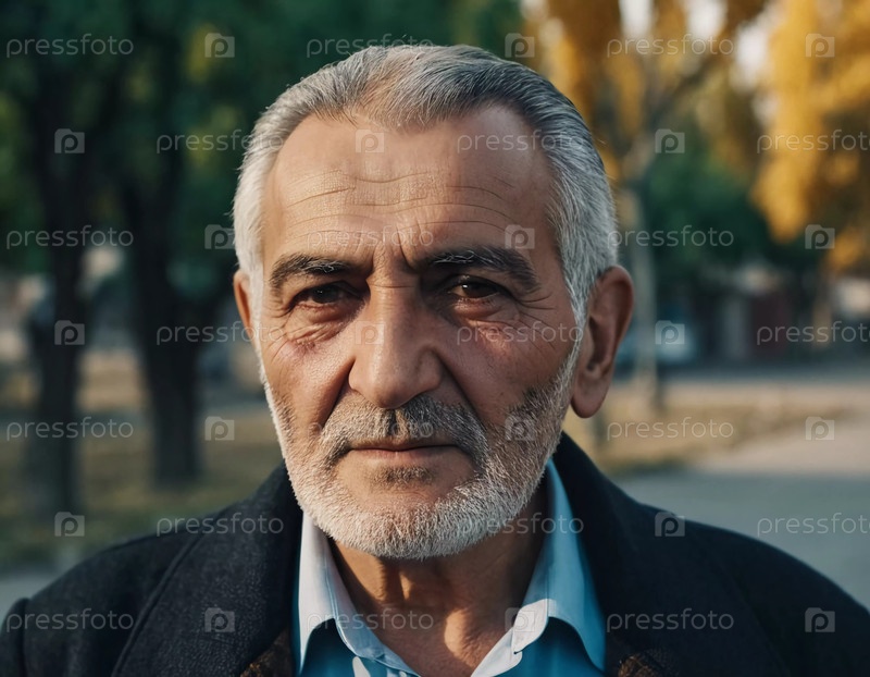 Пожилой армянин стоит в тихом парке, его мудрые глаза отражают годы жизненного опыта. Осенние листья нежно трепещут, когда солнце бросает на него теплые лучи
