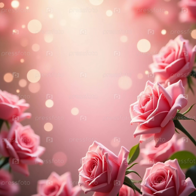 Нежные розовые розы мерцают мягкими огнями боке в мечтательной атмосфере, предлагая прекрасный фон для личных заметок или сердечных поздравлений, приглашая к творчеству Генеративный ИИ