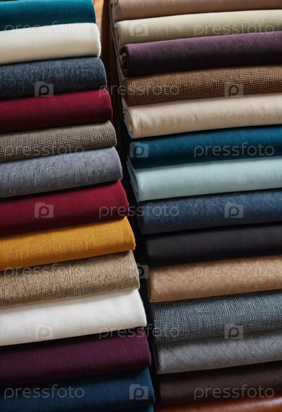 Потрясающий набор образцов тканей в различных насыщенных цветах аккуратно разложен, подчеркивая текстуры, идеальные для обивки. Этот ассортимент вдохновляет на творчество в дизайне интерьера