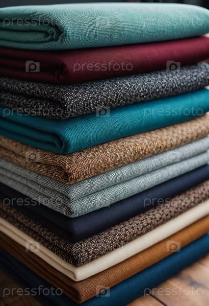 Мягкие образцы тканей в яркой цветовой гамме красиво сложены, приглашая креативность для проектов обивки. Каждая текстура предлагает уникальный потенциал для стильного дизайна интерьера