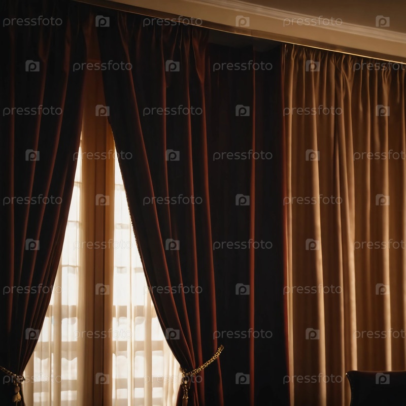 Богатые шелковые шторы глубоких оттенков элегантно ниспадают каскадом рядом с залитым солнцем окном, подчеркивая красоту изысканного интерьера. Уютная атмосфера вызывает ощущение комфорта и стиля